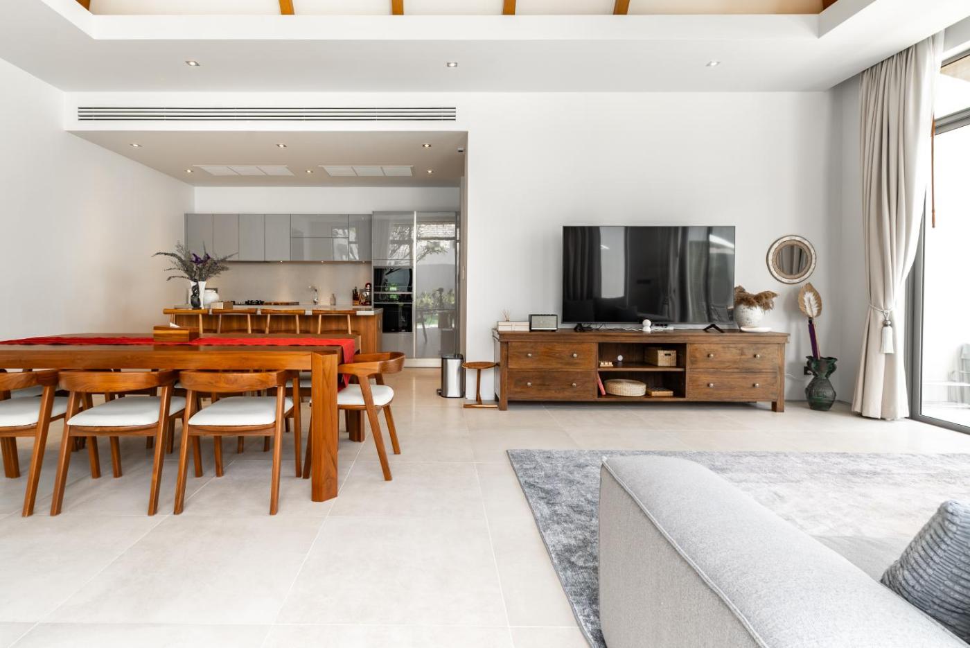 Three-Bedroom Villa. The private pool is the standout feature of this villa. Guests will find a refrigerator, a dishwasher, a microwave and a toaster in the kitchen. The villa also comes with a barbecue. The spacious air-conditioned villa features a flat-screen TV, a washing machine, a private entrance, a tea and coffee maker as well as garden views. The unit has 1 bed.