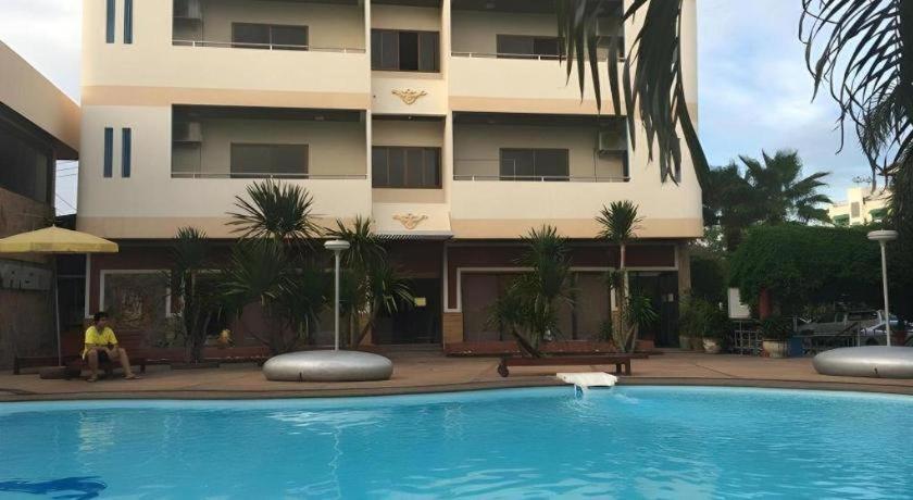 Guest can check-in on the building at the back (building with swimming pool)