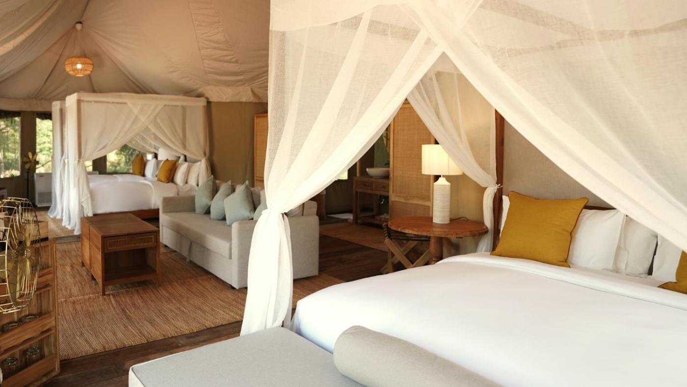 Serenity Two Bedroom Tented Villa. The spacious family room features air conditioning, a private entrance, a terrace with mountain views as well as a private bathroom boasting a bath. The unit has 3 beds. ;