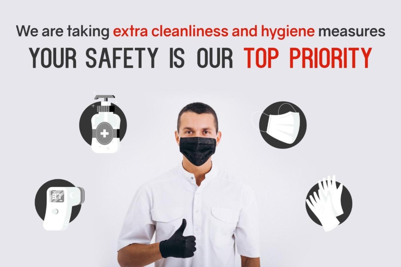 Hand sanitizer in guest accommodation and key areas