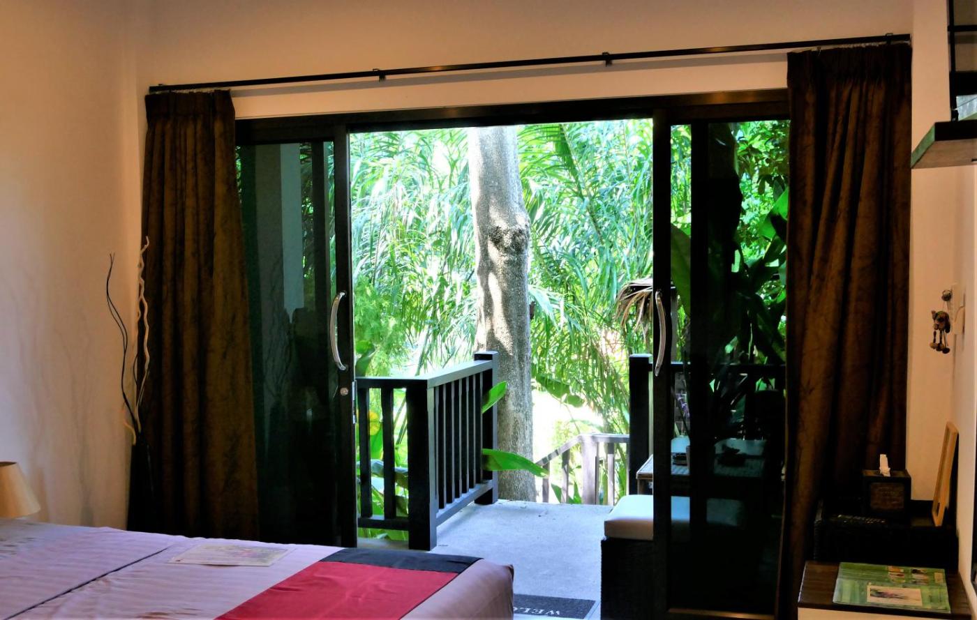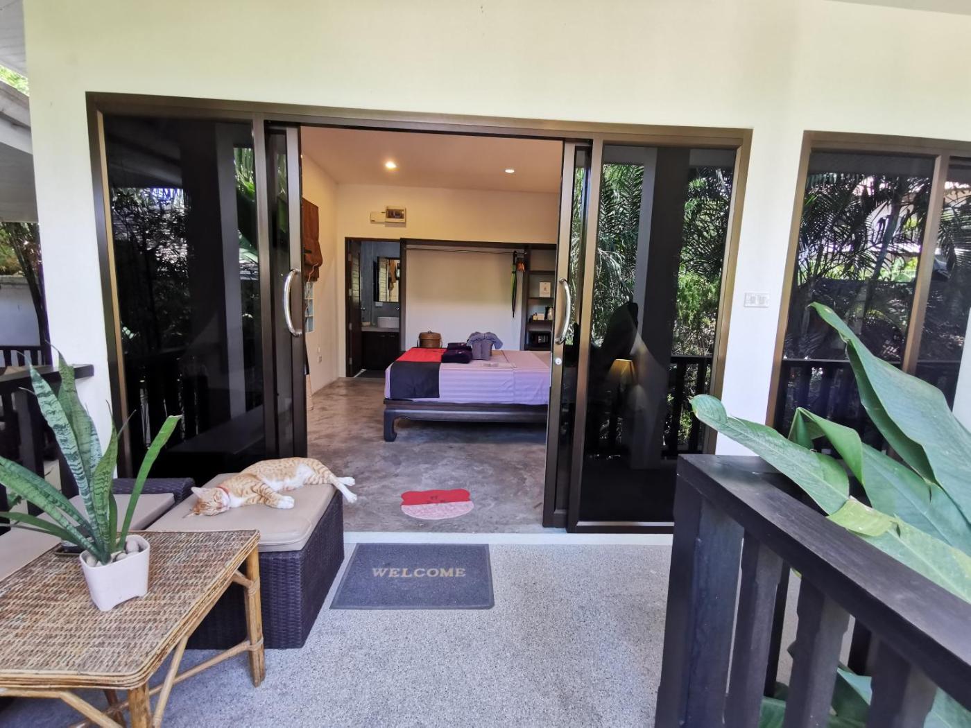 Villa with Garden View. This air conditioned villa has a private terrace overlooking the garden and the swimming pool. It offers an outdoor living area. It is composed of two bedrooms and two en suite bathrooms. the 2 bedrooms are INDEPENDANT (connected by the terrace) An extra bed can be added on request at THB 500 to accommodate an extra person. ;