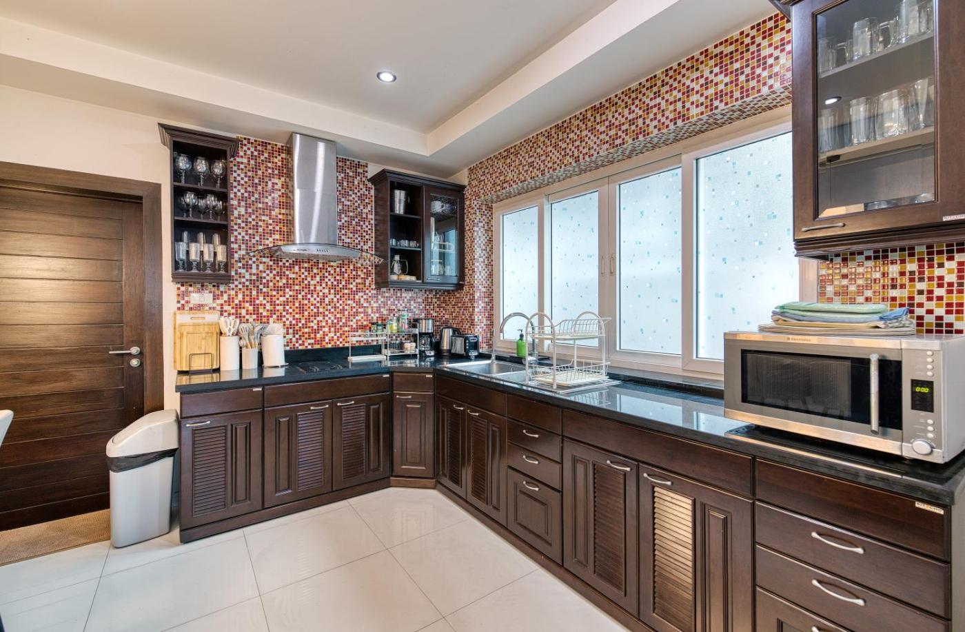 Sea View Luxury Pool Villa. The pool with a view and hot tub are the special features of this villa. Boasting a private entrance, this air-conditioned villa comes with 1 living room, 4 separate bedrooms and 4 bathrooms with a bath and a shower. Guests will find a stovetop, a refrigerator, kitchenware and an oven in the well-fitted kitchen. The villa also includes a barbecue. Featuring a terrace with sea views, this villa also features a washing machine and a flat-screen TV with cable channels. The unit has 5 beds.