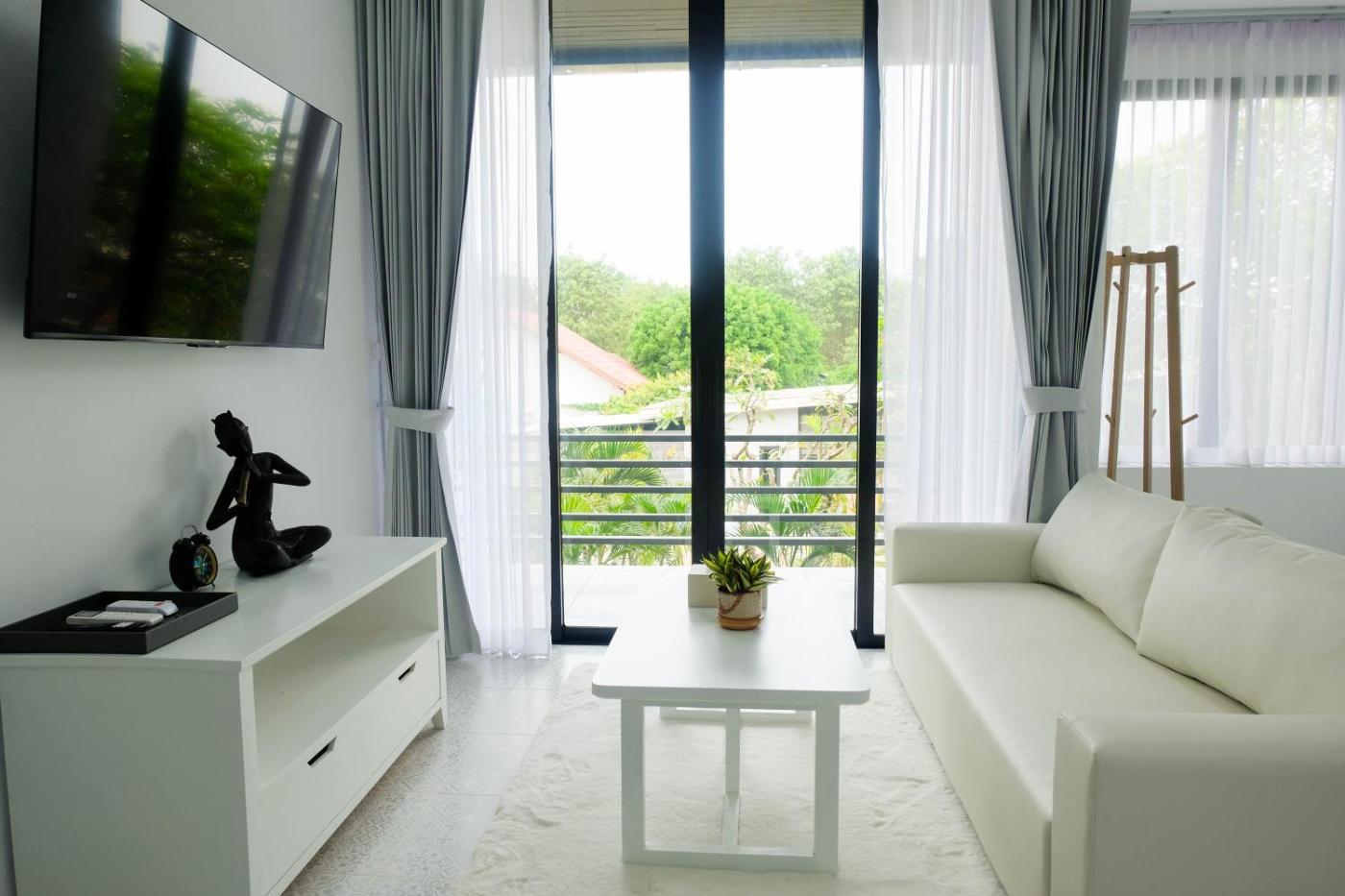 King Suite with Balcony. Boasting a private entrance, this air-conditioned suite features 1 living room, 1 separate bedroom and 1 bathroom with a shower and a hairdryer. In the well-equipped kitchen, guests will find a stovetop, a refrigerator, kitchenware and a microwave. Featuring a terrace with garden views, this suite also features a tea and coffee maker and a flat-screen TV with cable channels. The unit has 1 bed.