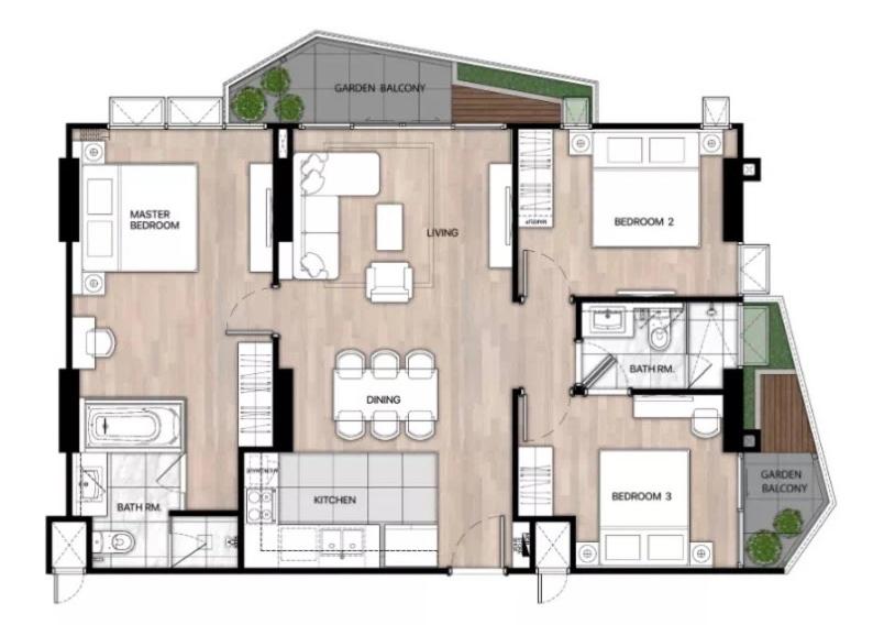 Three-Bedroom Apartment. This luxurious apartment features a pool with a view, a hot tub and a sauna. In the fully equipped kitchen, guests will find a refrigerator, a microwave, a toaster and an electric kettle. The spacious air-conditioned apartment offers a flat-screen TV, a washing machine, a minibar, a wardrobe as well as garden views. The unit has 3 beds.