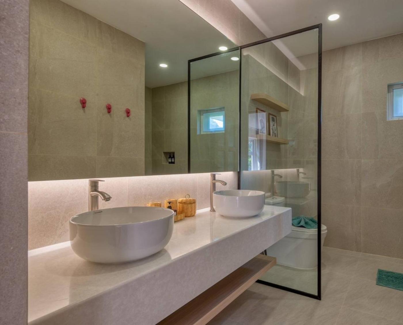 Two-Bedroom Villa. This villa offers a pool with a view. This villa comprises 1 living room, 2 separate bedrooms and 2 bathrooms with a bath and free toiletries. Meals can be prepared in the kitchen, which comes with a stovetop, a refrigerator, kitchenware and a microwave. The air-conditioned villa provides a flat-screen TV, a washing machine, a tea and coffee maker, a seating area as well as lake views. The unit offers 2 beds. ;