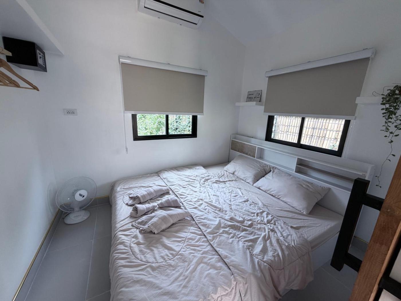 One-Bedroom House. This air-conditioned holiday home comes with 1 living room, 1 separate bedroom and 1 bathroom with a shower. Guests can make meals in the kitchen that features a stovetop, a refrigerator, kitchenware and an electric kettle. The holiday home has a washing machine, a seating area, a dining area as well as a terrace with garden views. The unit has 1 bed. ;