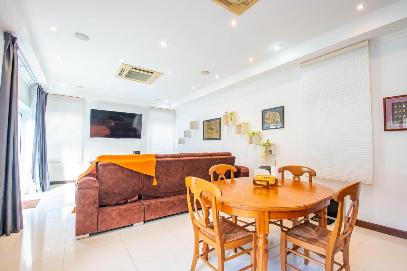 The spacious villa features 4 bedrooms, a flat-screen TV, a fully equipped kitchen with an oven and a microwave, a washing machine, and 4 bathrooms with a bidet. For added privacy, the accommodation has a private entrance and is protected by full-day security.