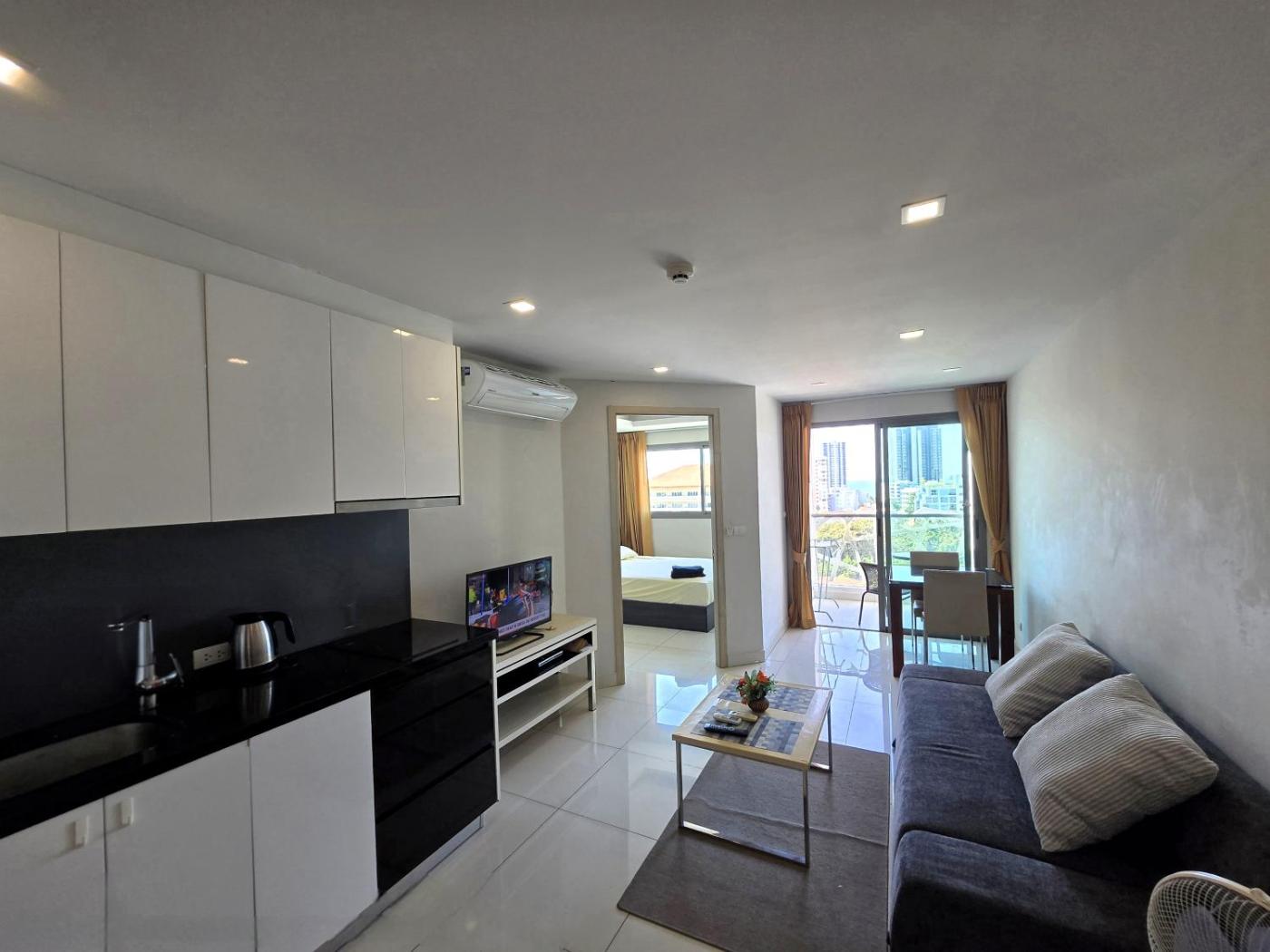One-Bedroom Apartment. The pool with a view is a top feature of this apartment. This air-conditioned apartment comes with 1 living room, 1 separate bedroom and 1 bathroom with a shower. Meals can be prepared in the kitchen, which features a stovetop, a refrigerator, kitchenware and a microwave. Boasting a balcony with sea views, this apartment also features a tea and coffee maker and a flat-screen TV. The unit has 2 beds.