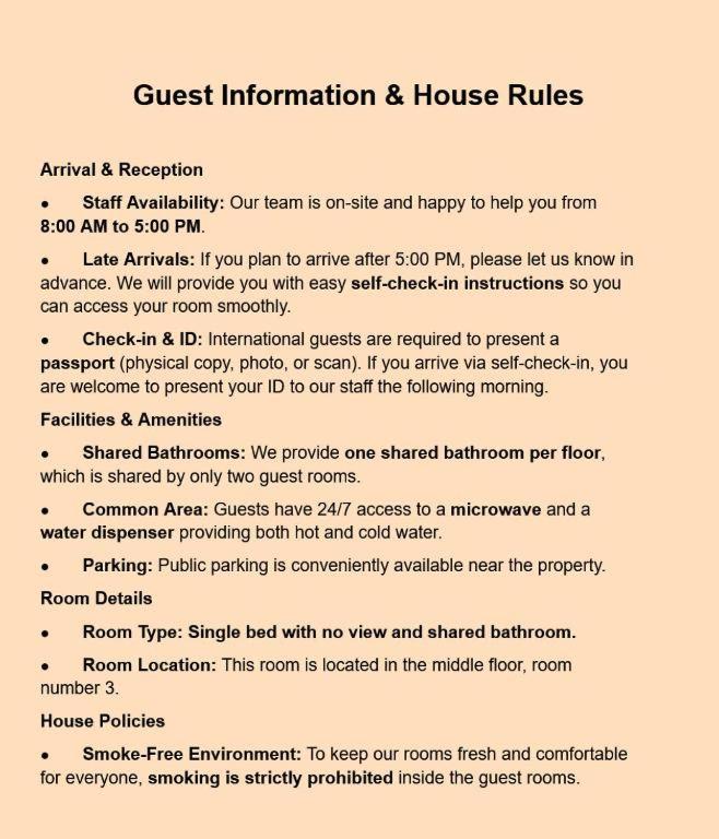 Single Room with Shared Bathroom. This single room features a shared bathroom and air conditioning. The unit offers 1 bed. ;