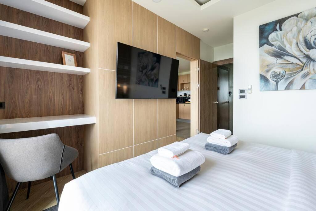 One-Bedroom Apartment. This apartment comes with 1 living room, 1 separate bedroom and 1 bathroom with a shower and free toiletries. The fully equipped kitchen has a stovetop, a refrigerator, kitchenware and a microwave. The air-conditioned apartment features a flat-screen TV, a washing machine, a tea and coffee maker, a seating area as well as city views. The unit has 2 beds. ;