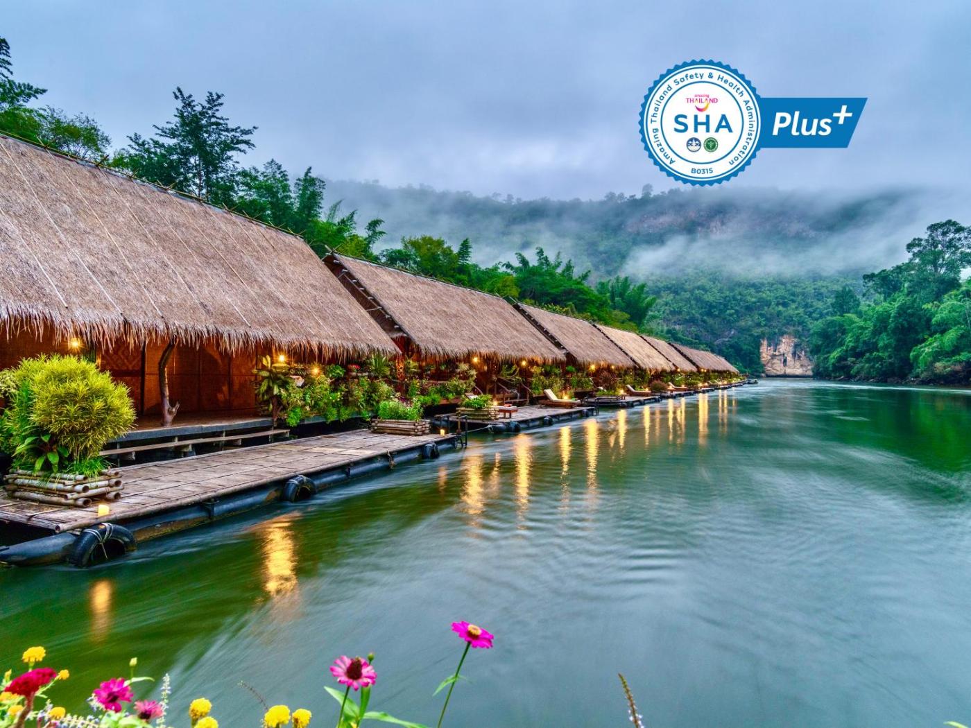 Set peacefully by Kwai Noi River, River Kwai Jungle Rafts offers ecologically friendly floating accommodation surrounded by tropical greenery. To enhance the peacefulness and uniqueness of the hotel, rooms that float on a wooden raft use oil lamps and candles instead of electricity.
