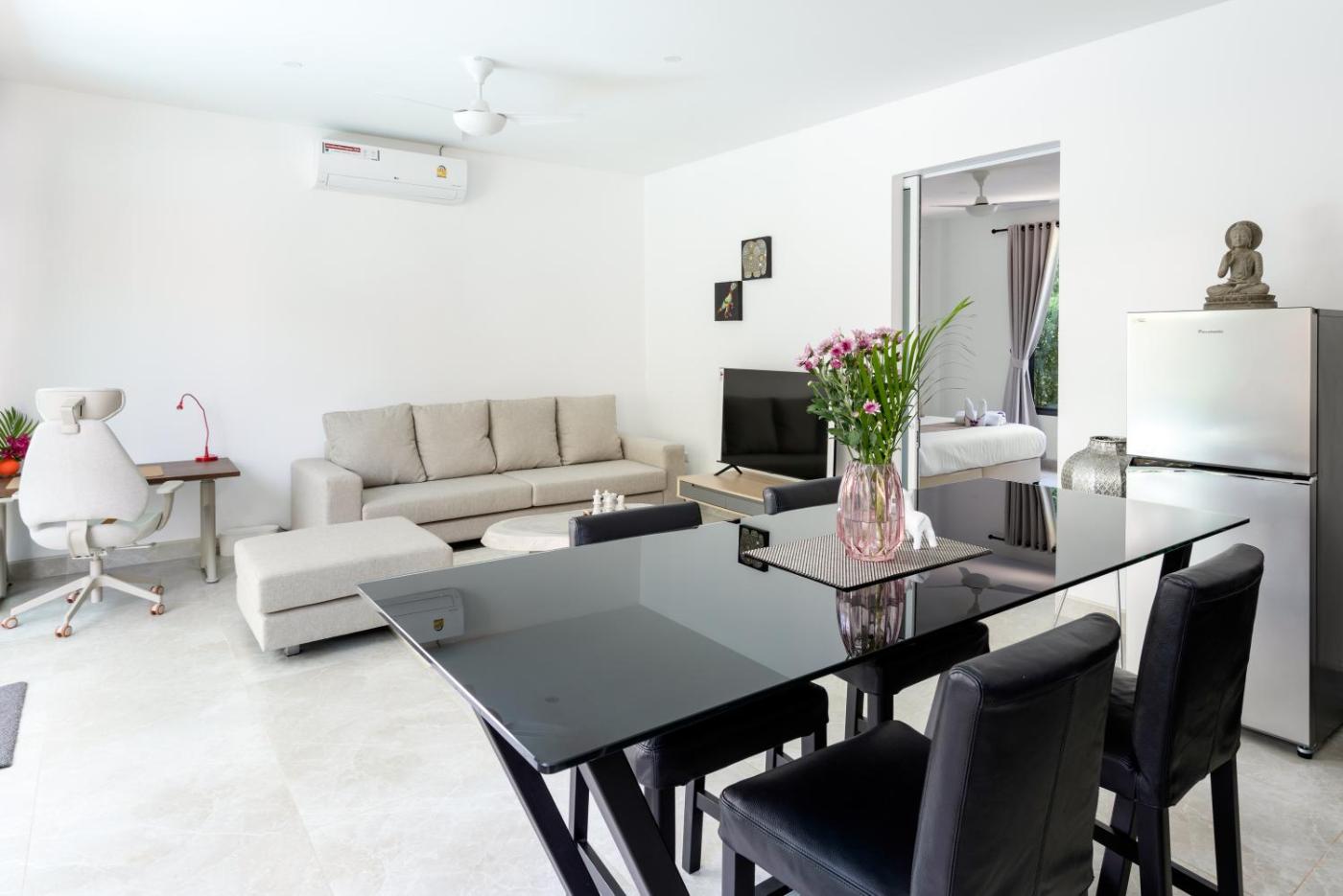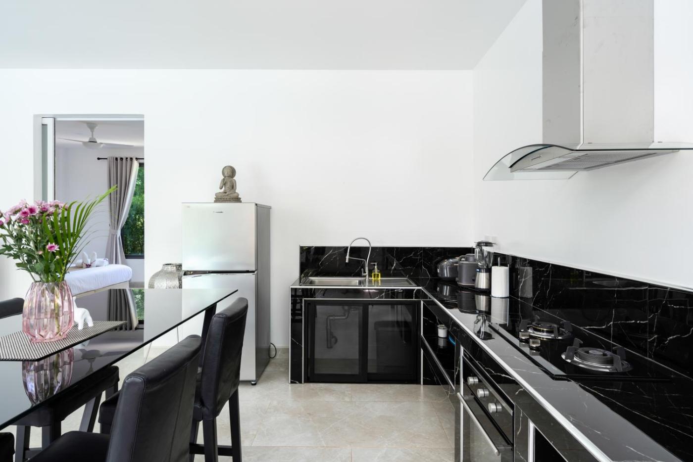 One-Bedroom Villa. This villas standout feature is the pool with a view. Boasting a private entrance, this air-conditioned villa includes a kitchen, 1 bedroom and 1 bathroom with a walk-in shower and a bidet. Guests can make meals in the kitchen that is fitted with a stovetop, a refrigerator, kitchenware and an oven. Featuring a terrace with garden views, this villa also offers soundproof walls and a flat-screen TV with streaming services. The unit has 1 bed. ;