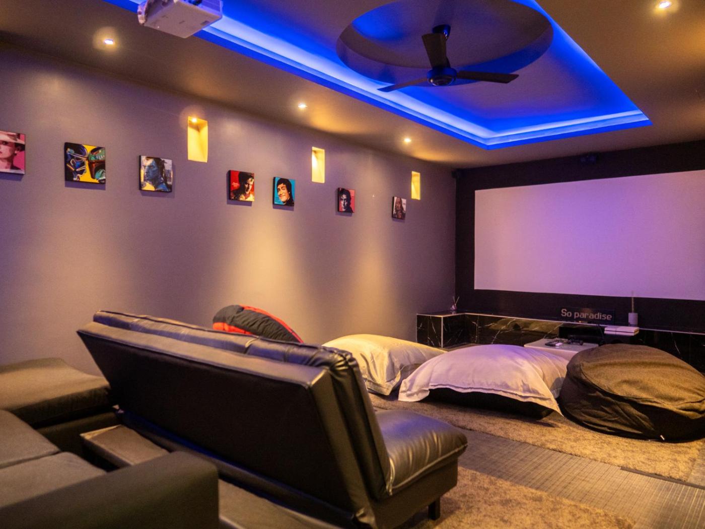 The villa also features an outdoor swimming pool and a fitness centre for guests to relax in. Guests can also relax in the garden.