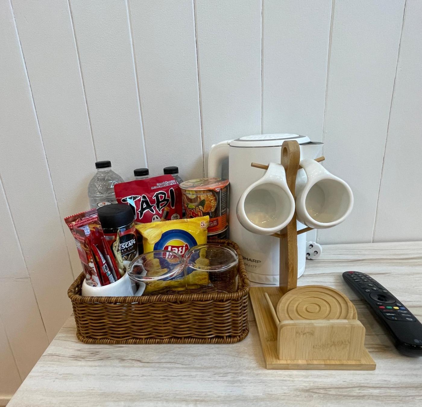 Shared stationery such as printed menus, magazines, pens, and paper removed